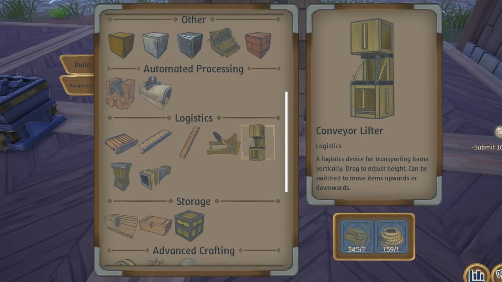 Conveyor LifterTransports items vertically. Height can be adjusted by dragging it. Can be used to move items upwards or downwards.