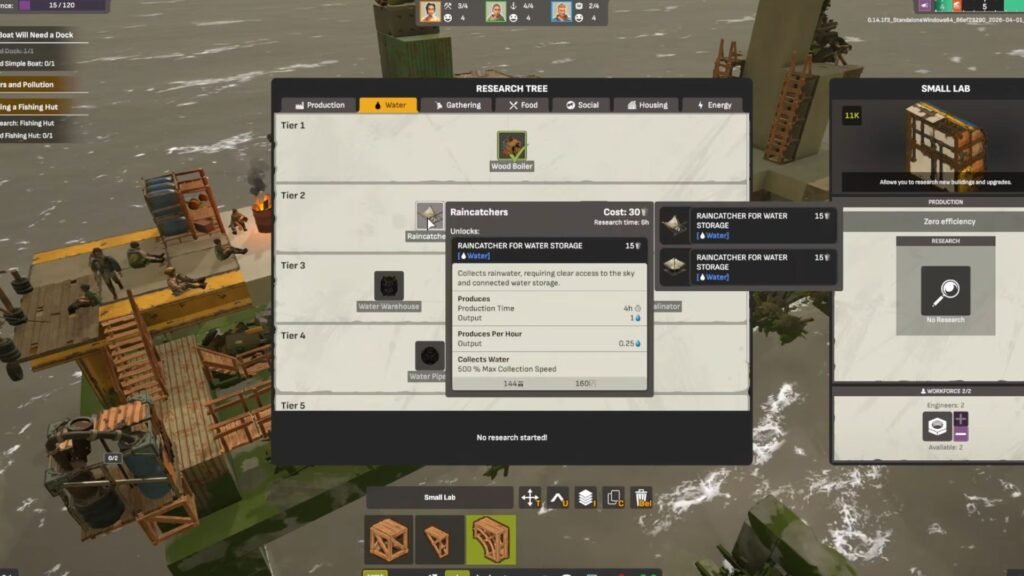 Since your time spent in All Will Fall will be mainly at sea, you need to prep your residents with the necessary supplies and meet their basic needs. Obtaining water in the early game can be a bit difficult if you don’t have the right resources to filter out the impure water. That’s where the Rain Catcher comes in. With this, you can utilize the turbulent weather conditions of the ocean to your advantage.​