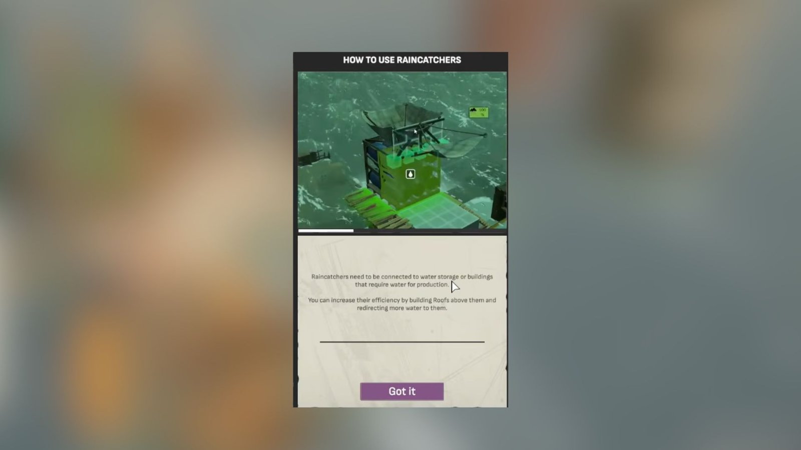 • Later in the game, you could build Rain Catchers to the side of the storage container to gather more water.