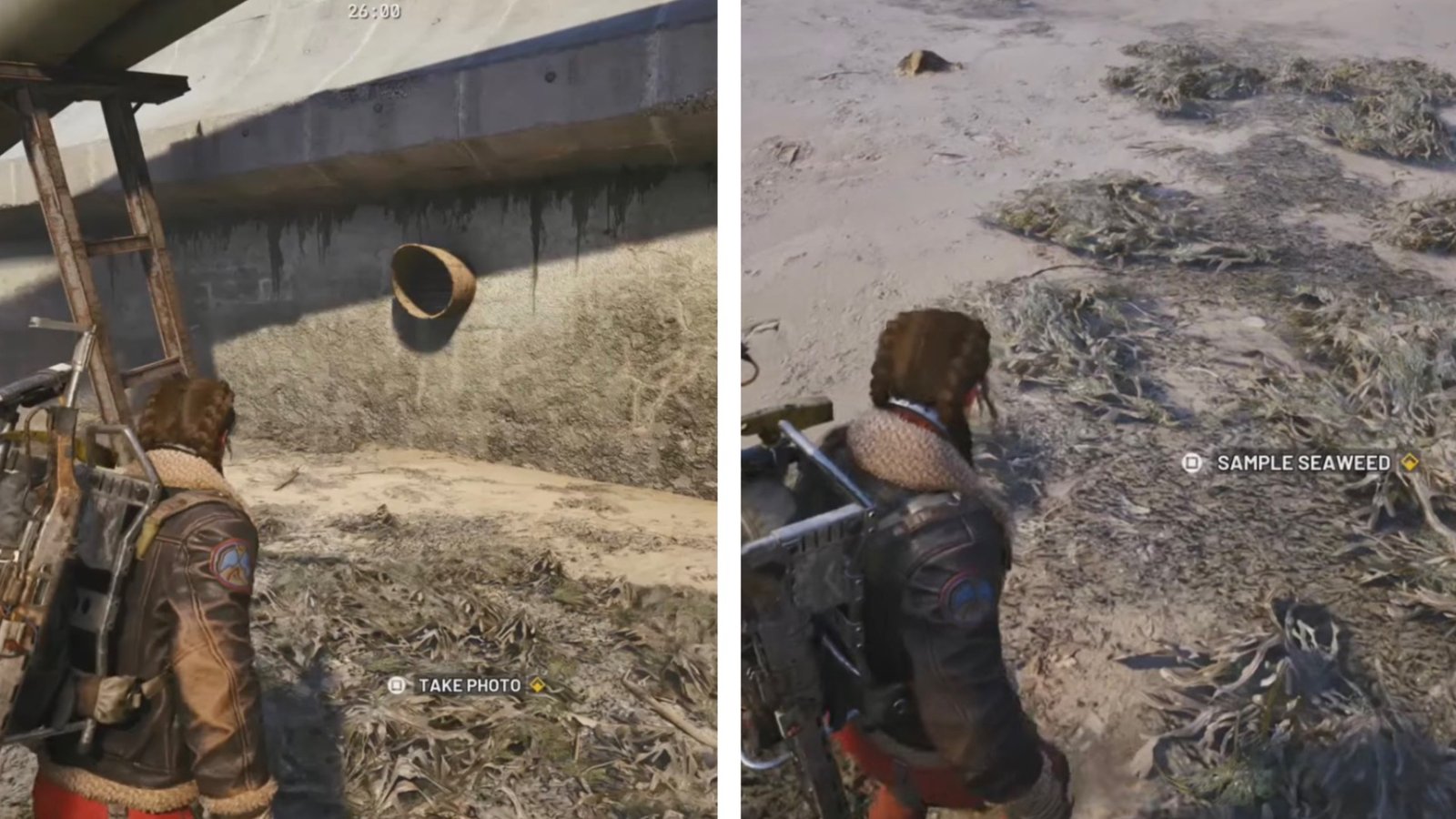For the next “Battening Down” objective, head to the Azzurro Beach POI located directly west of Seabed and Point Authority Building, towards the northwestern side of Riven Tides. Follow the shoreline towards the southwest, as shown in the image above, to encounter seaweeds on the ground. Approach it to have the “Sample Seaweed” prompt. Finish this task to complete the second objective for this quest.