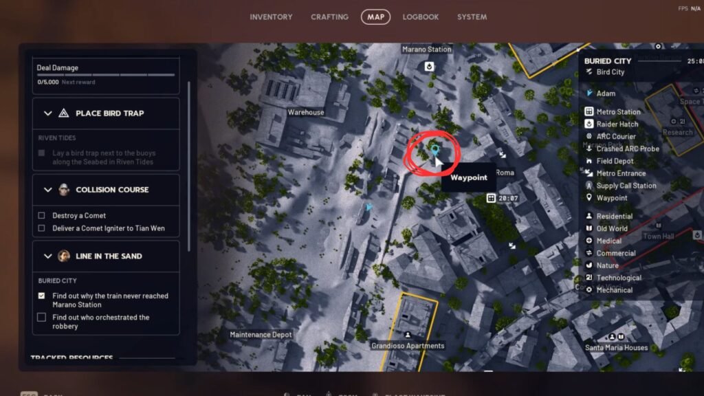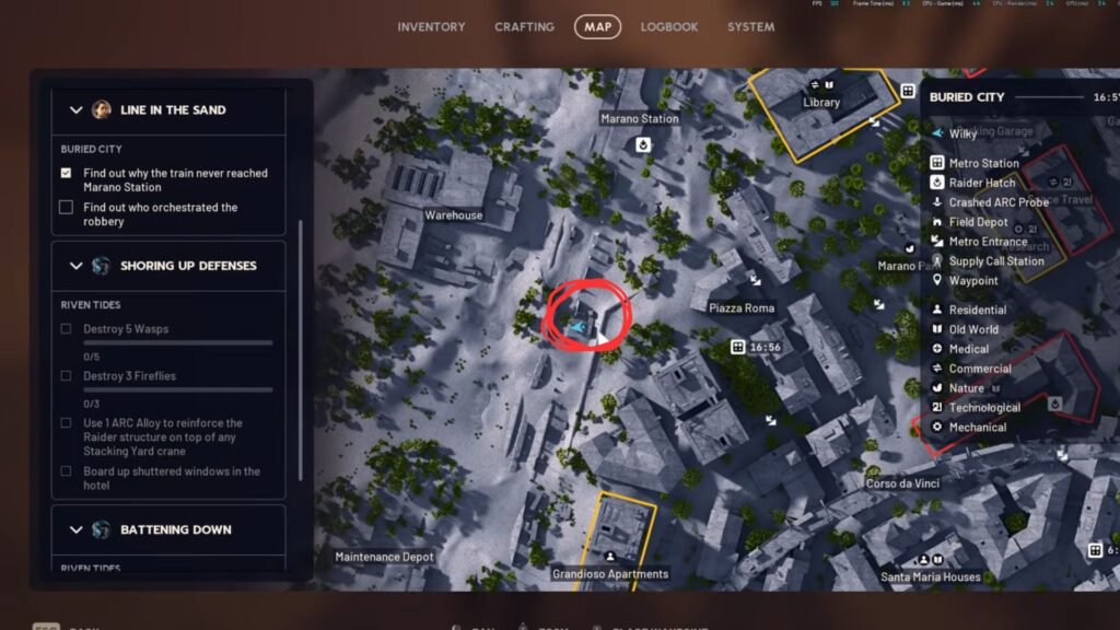 To start the quest, head south directly from Marano Station POI, just between Piazza Roma and the Warehouse. You will find these locations on the western side of the map. Check out the derailed train half buried in the sand to get the next quest objective. During my time with this quest, I couldn’t get the next objective to appear until I stood on the train itself.