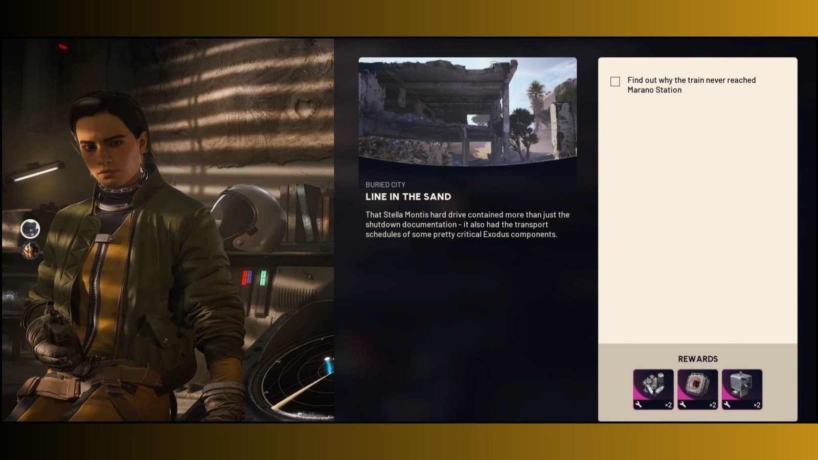 - The Line in the Sand quest takes you around Buried City to find out the mystery of the derailed train.