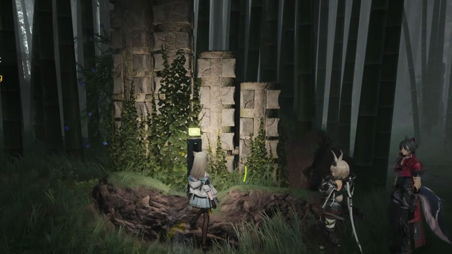 Follow along and continue to scan the area to get the third quest marker to the left of a bent tree. The trees will block your path right after and lead you to a flight of stairs going down. Follow along this path to encounter the Guiding Lights puzzle.