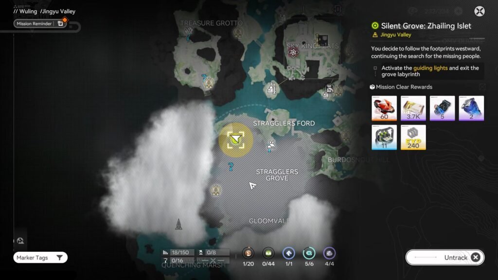 - The activation of the guiding lights objective appears during the Silent Grove: Zhailing Islet quest.
