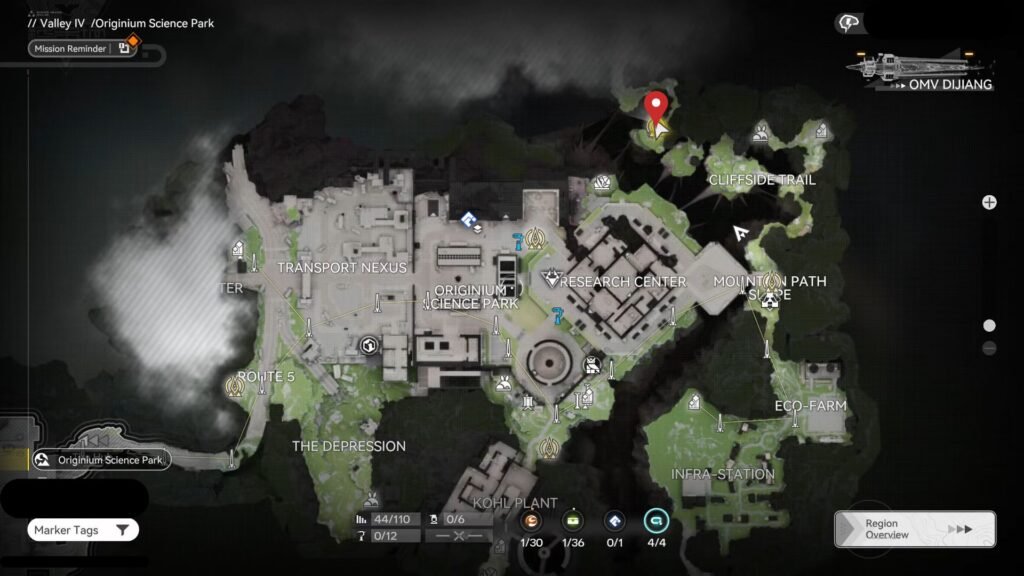 • For the quest, after reaching Originum Science Park, travel north of Mountain Path Trail.
