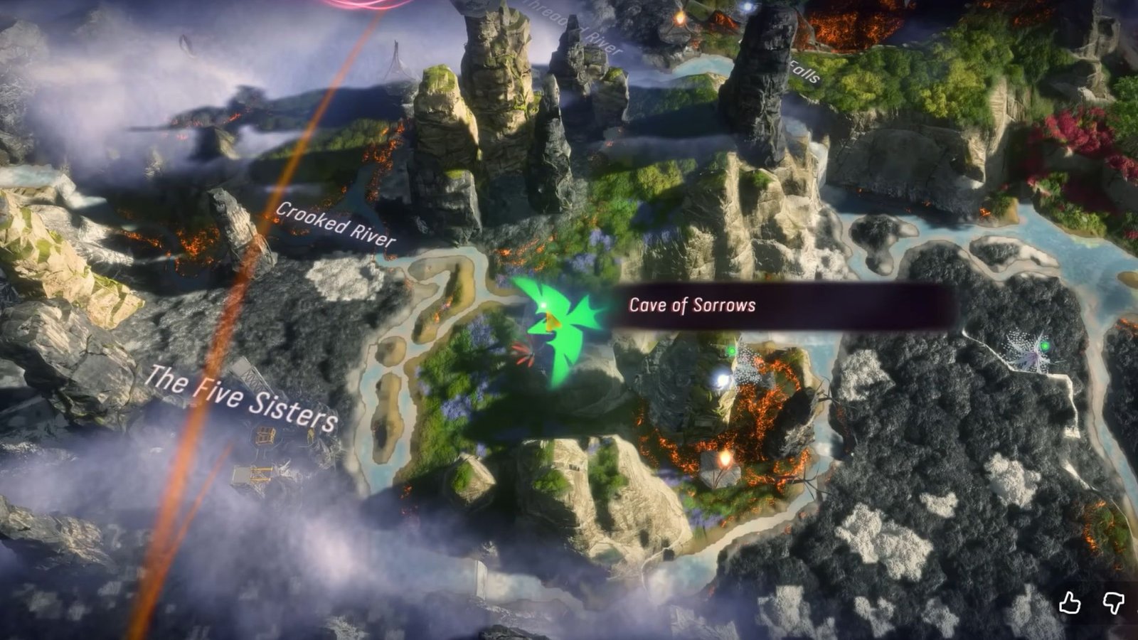- In Rising Spires, just east of the Five Sisters and Crooked River, is the Cave of Sorrows.