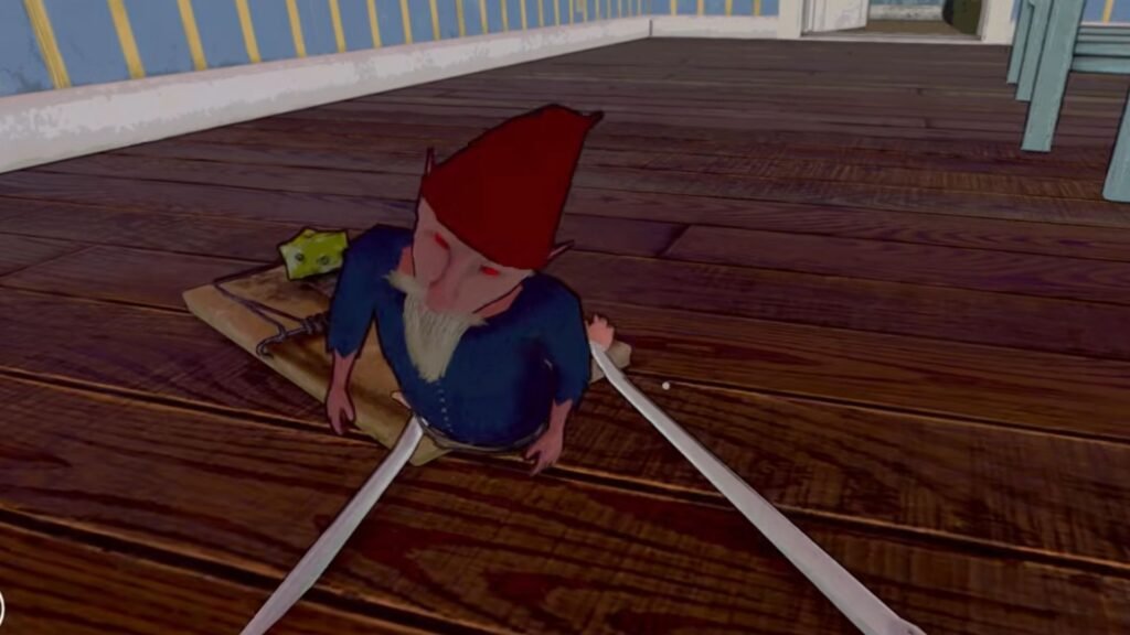 There are two useful ways to trap and kill the evil gnome early on. You could use the mousetrap lying around and toss it at them, or lure them under the vacuum if you have this spawn in your game.