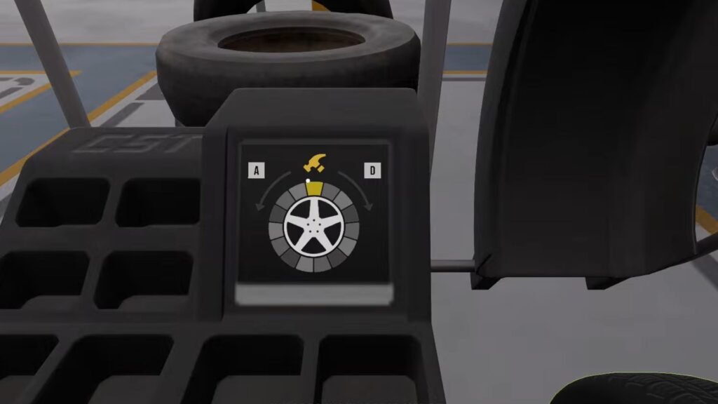 Visit the car and select the empty wheel slot. This will bring up the wheel menu. Select your new wheel and place it within the slot, and screw the bolts to fix it in place. Repeat this step to fix all new tires, which completes the task of changing tires on the car.