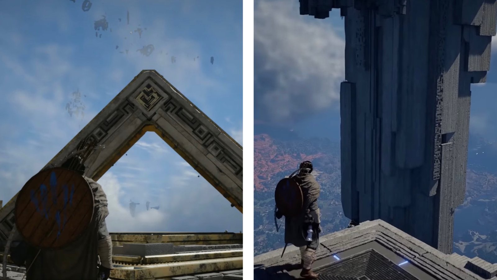 To conjure the path forward, use Axiom Force on the Alignment Device to your left, the small pillar with a hole in the middle. Turn the centre of the pillar until it begins to glow. Then, let go to form the Skybridge with the floating platforms ahead.