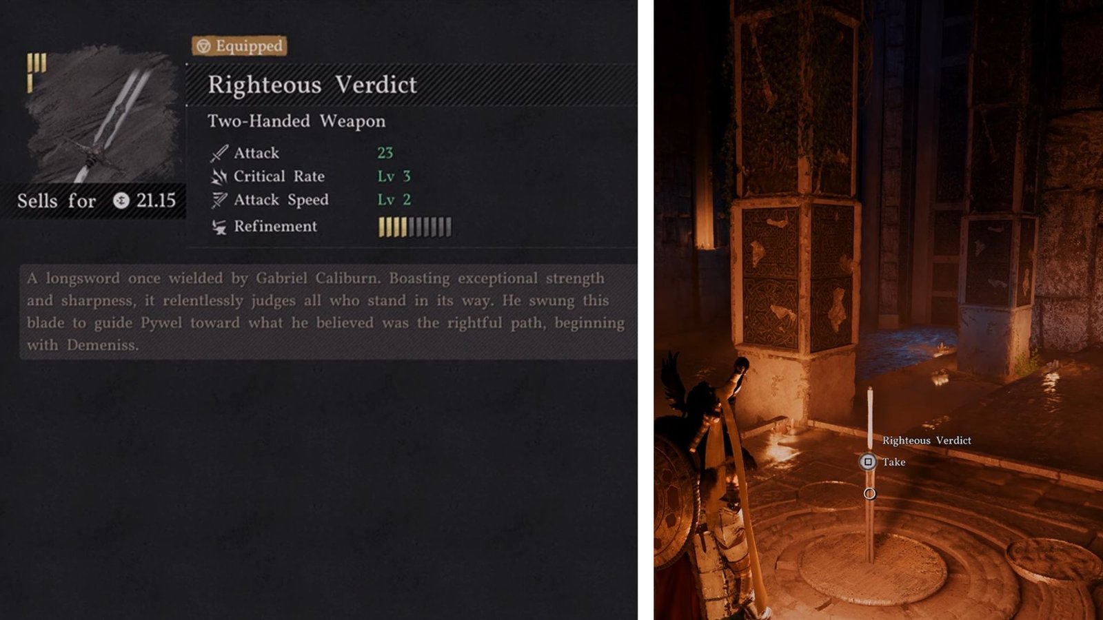 The Righteous Verdict is one of the best double swords to wield in the game, so it is best to take your time and quickly get this sword.