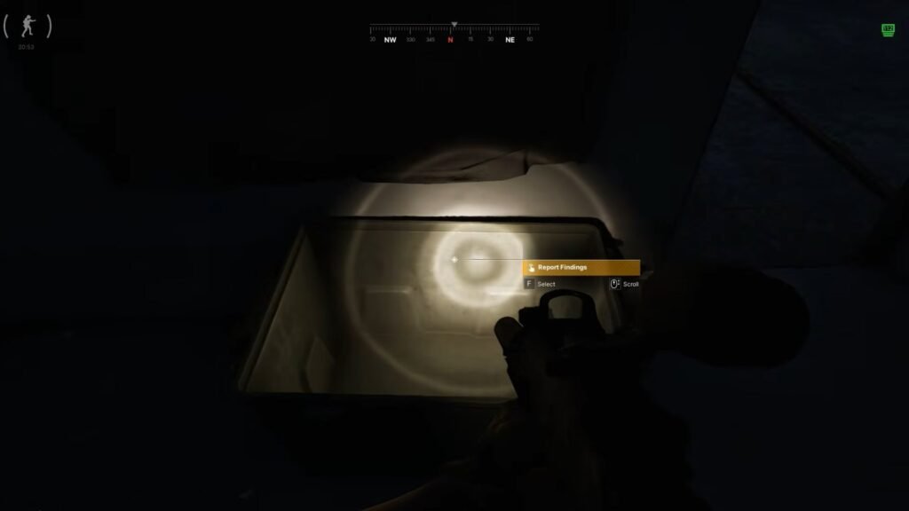 Once you have the key, head over to (159, 168) to the west of Hunter’s Paradise. Enter the office and go through the door on the left. To the immediate right after entering the room is a box. Investigate the box to get the next objective.
