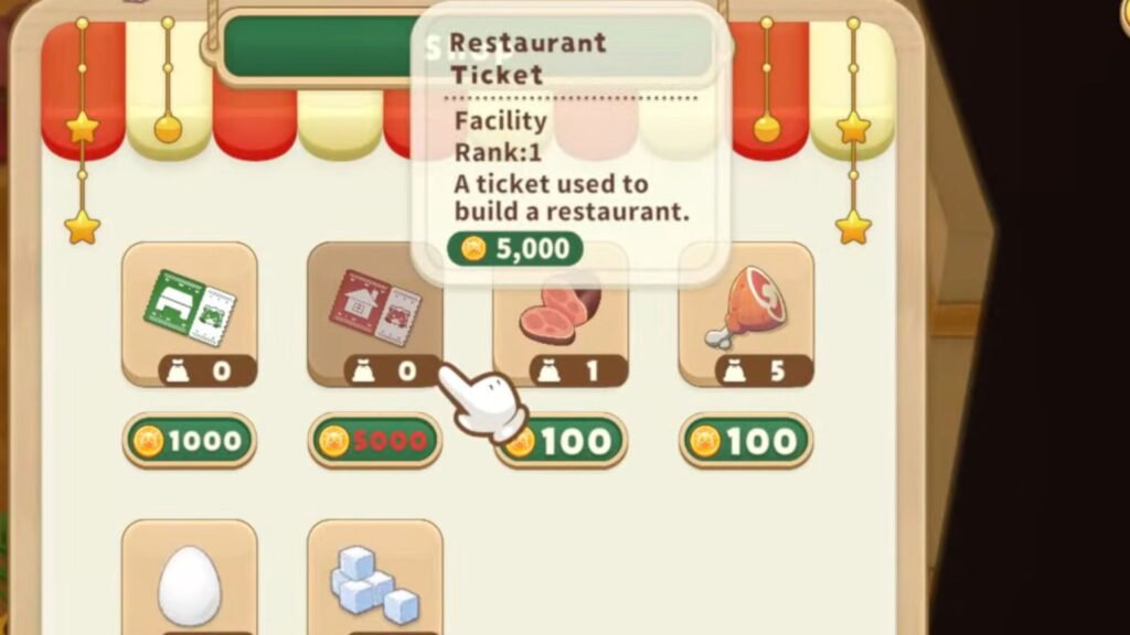 Follow along with the quest objectives until you get the quest to Build a Store. You will get 2 options here: either get a Restaurant or a Smithy first. Head into the Mayor’s House and speak to Chef Lunight to purchase a Restaurant Ticket or speak to Ckia to purchase a Smithy ticket. Both tickets will cost 5000 coins. ​