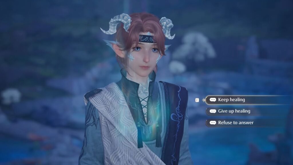 Healing others drained some of my strength in the process, and the healing minigame became a lot harder. Eventually, at the end of the area, I met the Old Ferryman. He begged not to heal him, and that’s when I was presented with three unique choices.