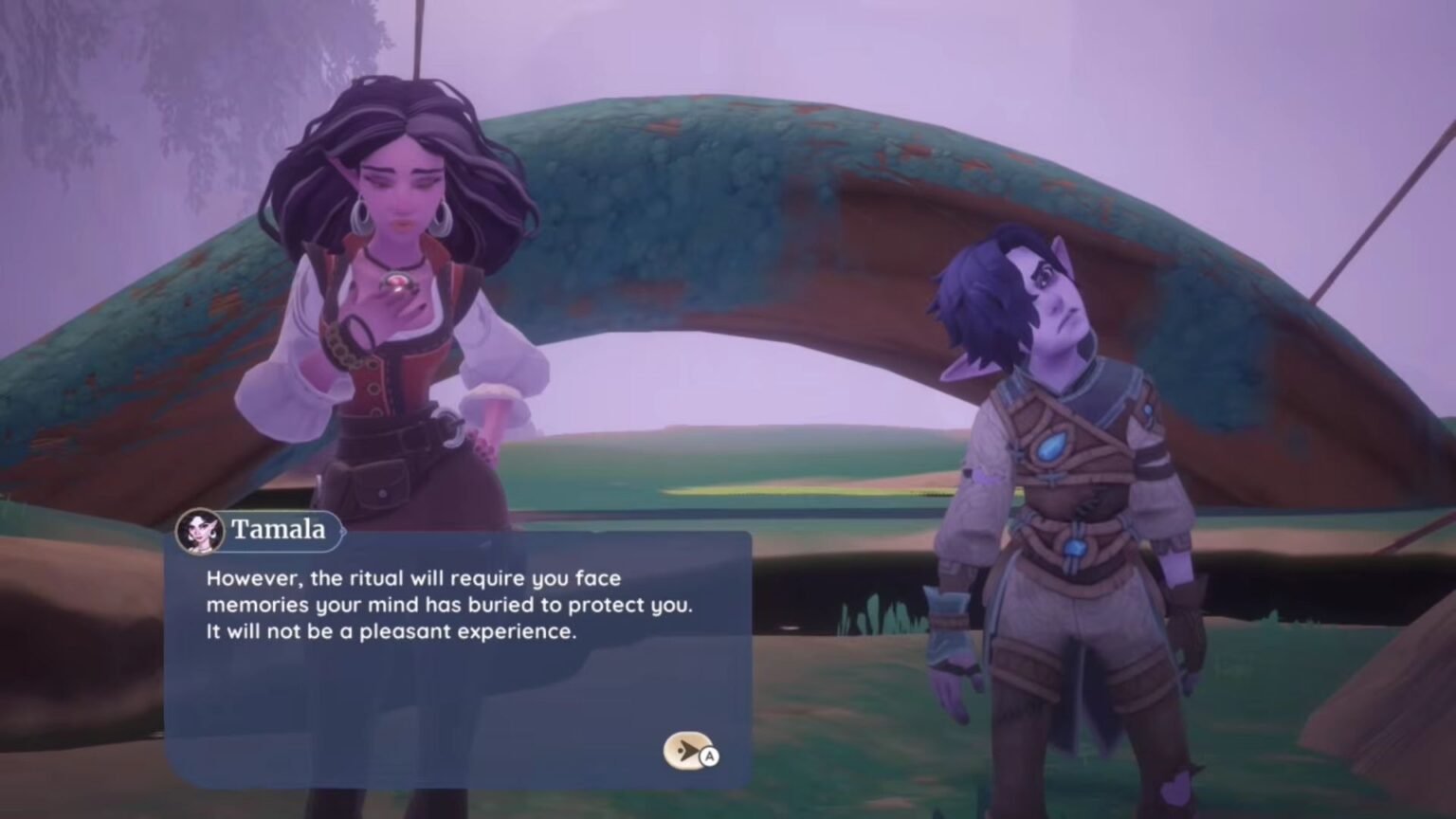 Exit the cave after your conversation with Ulfe to find Tamala. Speak to her to show her all the items. Now, you are tasked with performing a ritual to help remove the shield surrounding the Flowflower. For the ritual, you will spot three altars with the items that correspond to Ulfe’s past, present, and future in front of them.