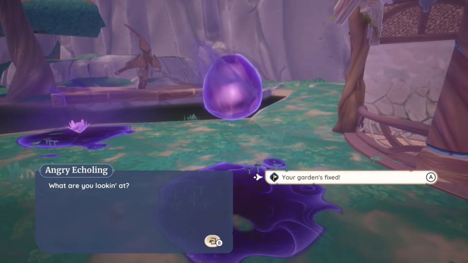 - You need to help the angry Echoling organise their garden.