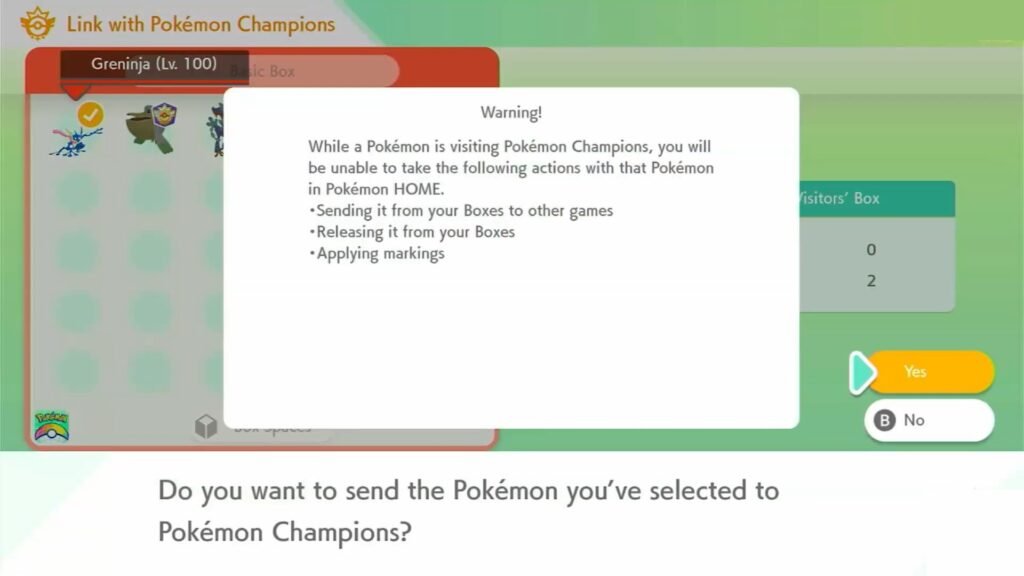 Confirm your selection, then visit the Pokémon Home app to find your transferred Pokémon. You can then follow the steps above to transfer Pokémon from Home to Champions. Do note that Pokémon sent from GO cannot return to GO again.