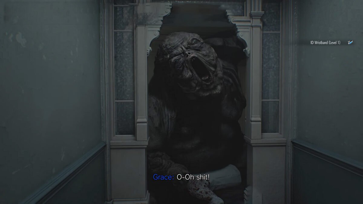- When you pick the ID off the floor, the giant blob monster Chunk will pop up. The same scenario plays out in Resident Evil Village with the baby in House Beneviento.