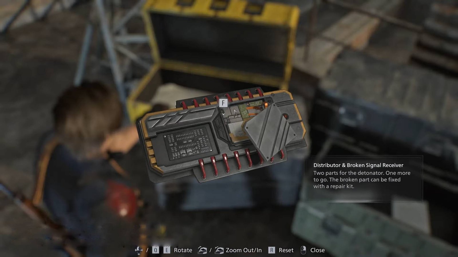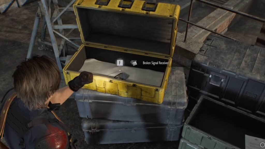 - Open the yellow crate to obtain the Broken Signal Receiver. You’ll notice that Leon remarks that the part is broken.
