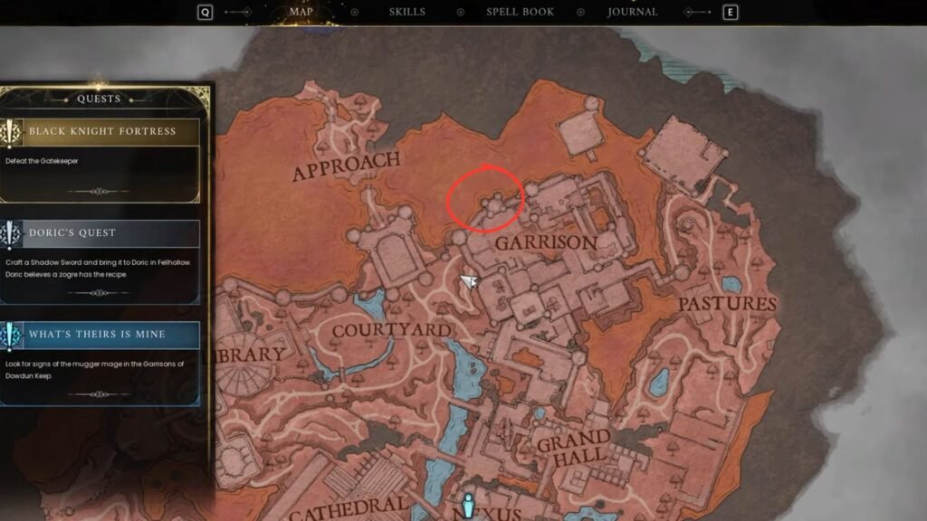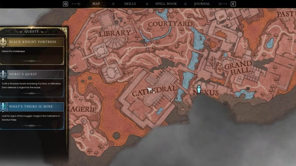 I initially encountered this quest after locating Doric. If you haven’t found Doric in the new Downdun Reach map, head over to the Nexus to find him near the entrance. After starting the quest, check your quest log for what should be done next, which is to find the mugger-mage. To find the mugger mage, the first location you need to check is the Cathedral to the west of the Nexus.
