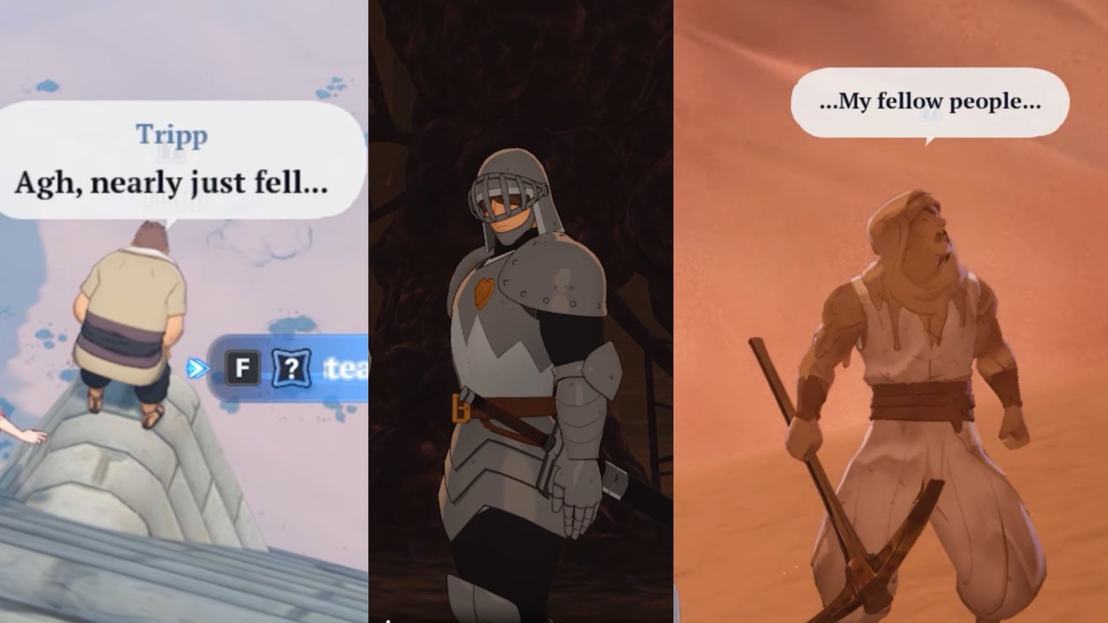 You will pick up this quest inside the Baste Prison. You will find the prison in the southern section of the Desert of Memories. Scale the tower and make your way up to the prison roof. Once you arrive at the top, make your way over to the domed roof and jump a level down to the equivalent of the second-floor roof. Over here, find and speak to Tripp to complete the Unsteady Climbing Enthusiast hidden quest. If you still can’t spot Tripp, I had to fall down from the roof a bit until I found this NPC on the ledge.​ You can run past the enemies to save time and focus on completing this quest.