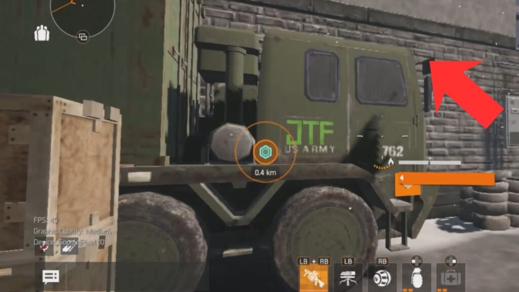 From HQ, go southwest to a large red truck. Go behind it, enter the alley next to parked cars, and look up. Jump the gate by the building and use the wall ladder to reach the crate. ​