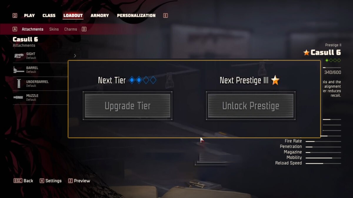 • You will get the option to prestige a weapon once it reaches its highest tier, and access it via the weapon progression menu.