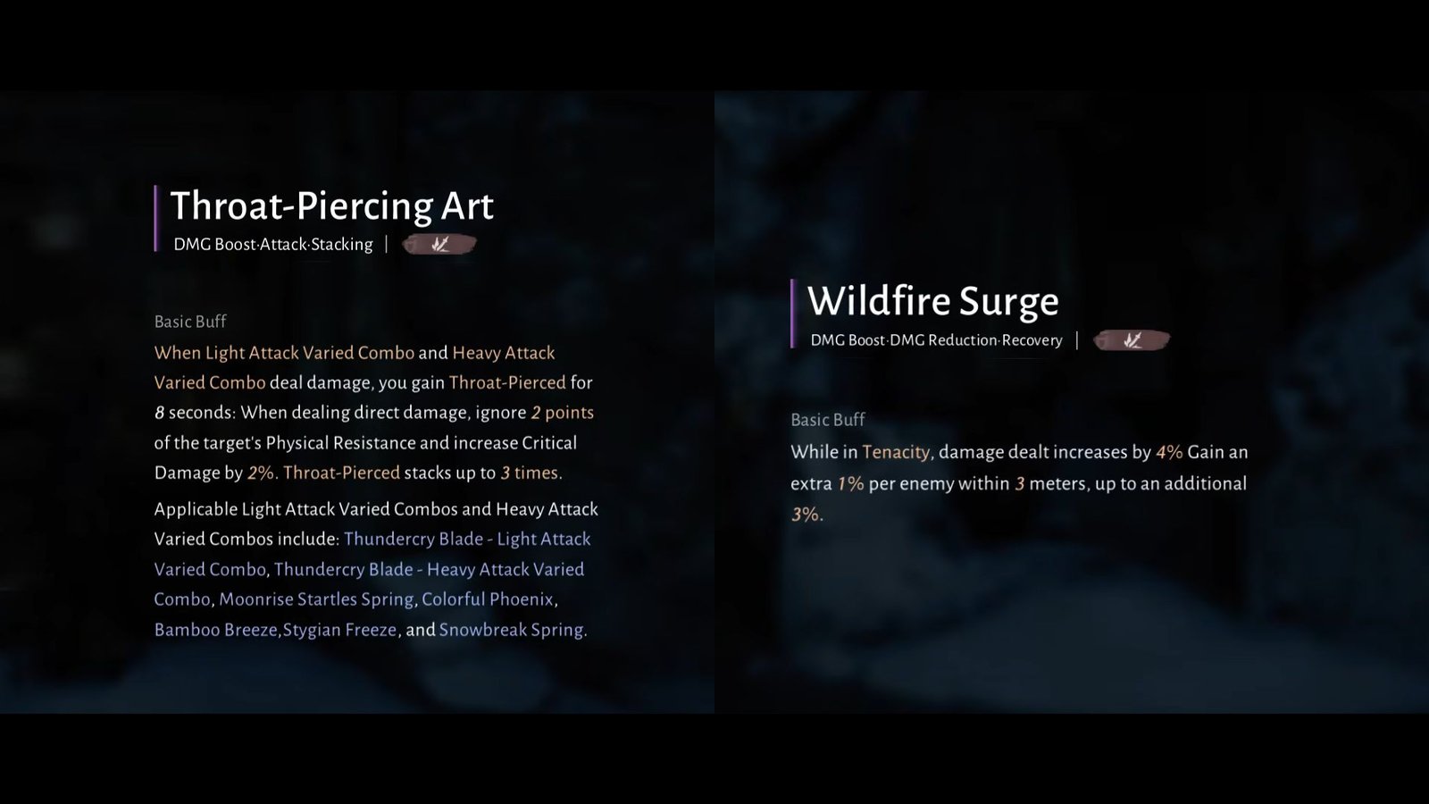 When a Light Attack and Heavy Attack varied combos deal damage, you will get Throat Piercing for 8 seconds. You will also ignore 2 points of the chosen target’s physical resistance when dealing direct damage. This will also increase your CRIT damage by 2%. Stacks up to 3 times.​