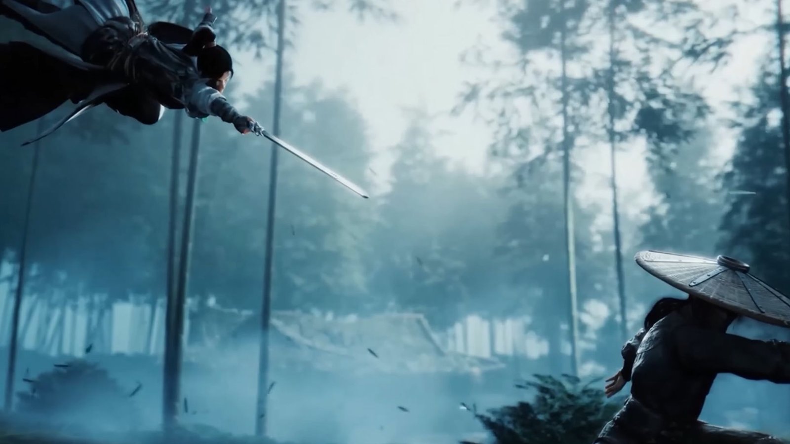 Inside the hut near the top of the stairs, eavesdrop on the Commoner’s conversation first, then move further west and up the platforms to find two Nine Mortal Ways disciples.