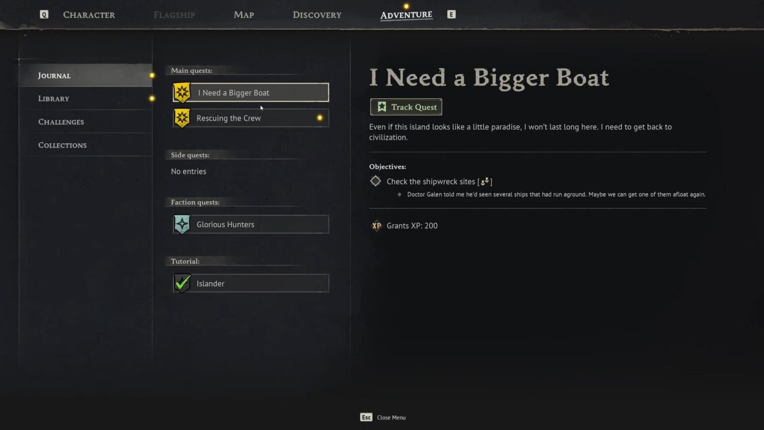 As you progress through the main story quests, you will encounter Doctor Galen at your campsite. Speak to him to get the I Need a Bigger Boat quest. For the quest, you will find marked locations on the map where a shipwreck is. Before you leave your island, it is best to place a fast travel bell on your current island. Then, take your boat and set sail towards the quest marker.